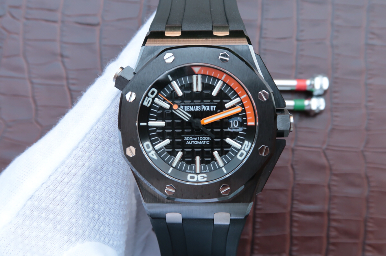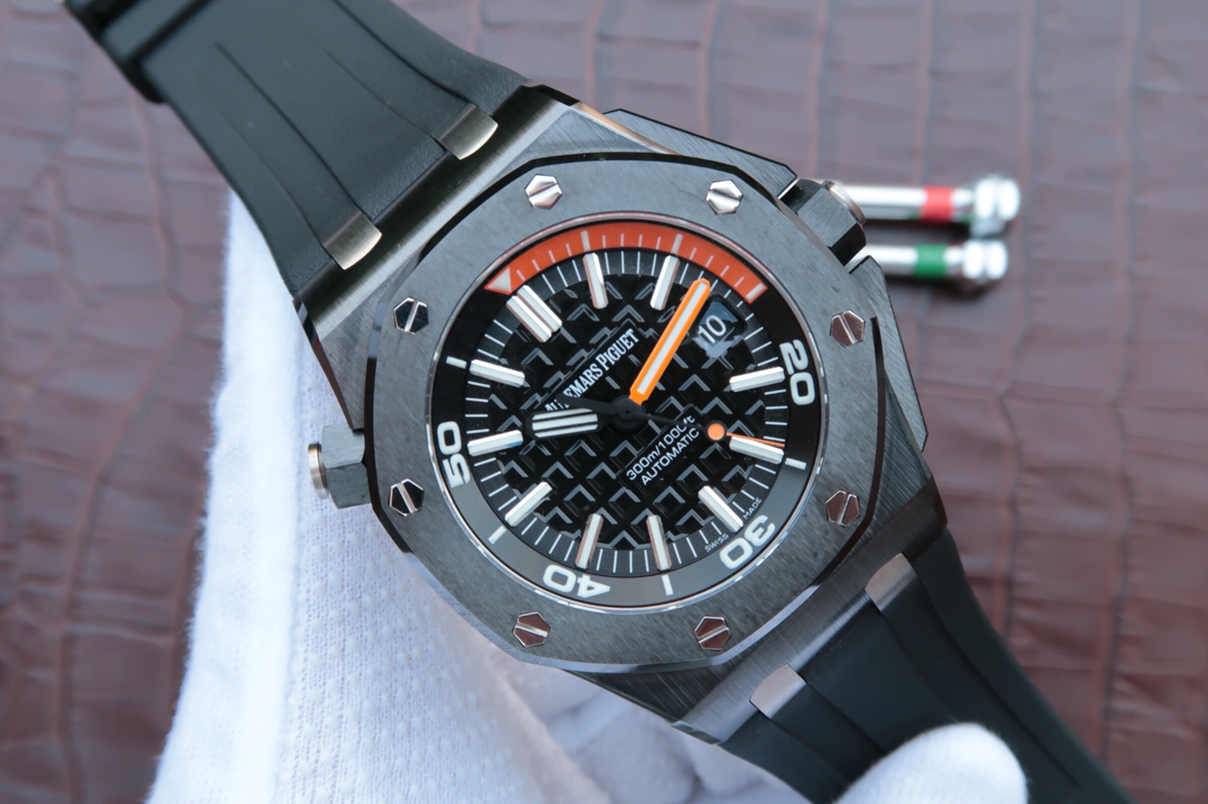 愛彼15707。碳纖維+鈦合金!實測高強度防水200米!進口9015改正品3120機!原裝潛水矽膠表帶!足夠亂真