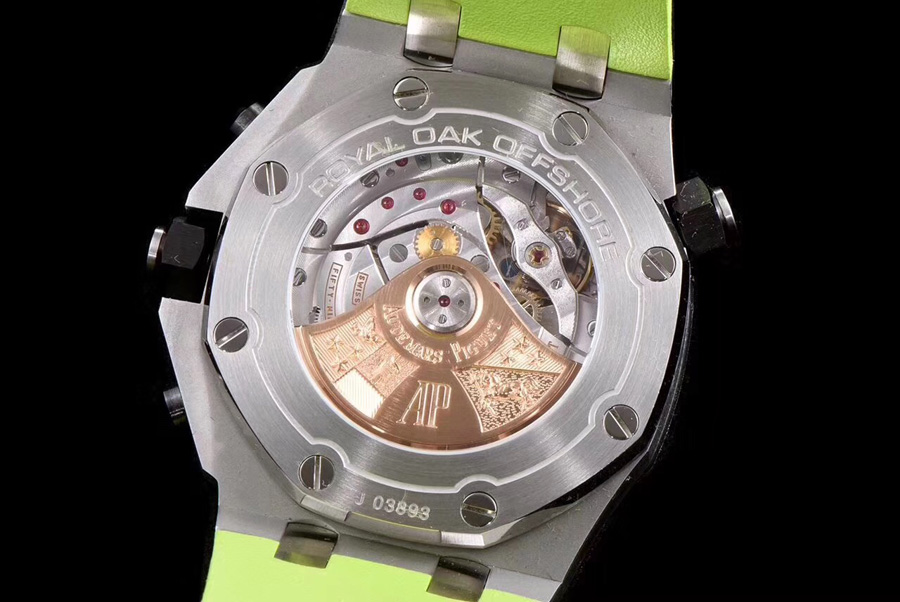 表盤材質:熒光綠色表盤鐫刻"Méga Tapisserie"超大紋格