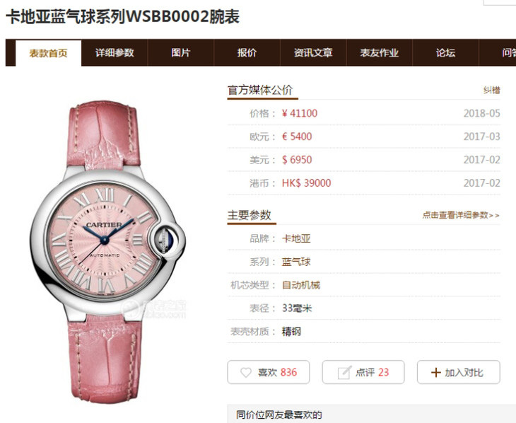 【品牌】卡地亞藍氣球系列WSBB0002腕表