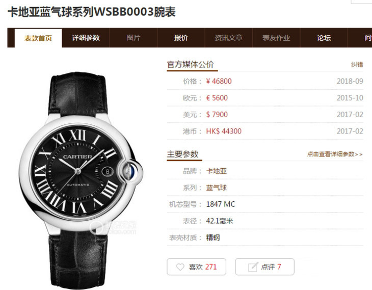 【品牌】AF廠出品卡地亞藍氣球系列WSBB0003腕表黑面皮帶款
