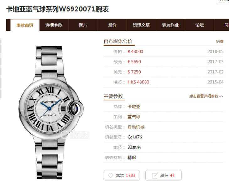 【品牌】卡地亞藍氣球系列WSBB0022腕表