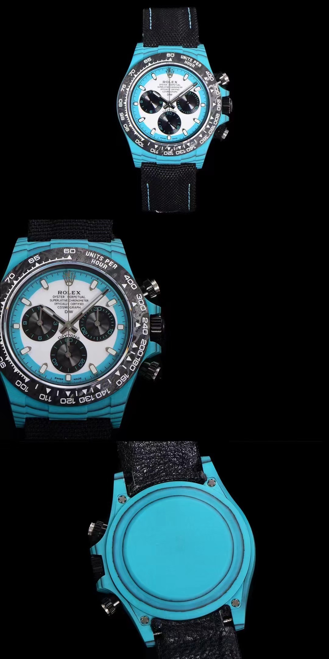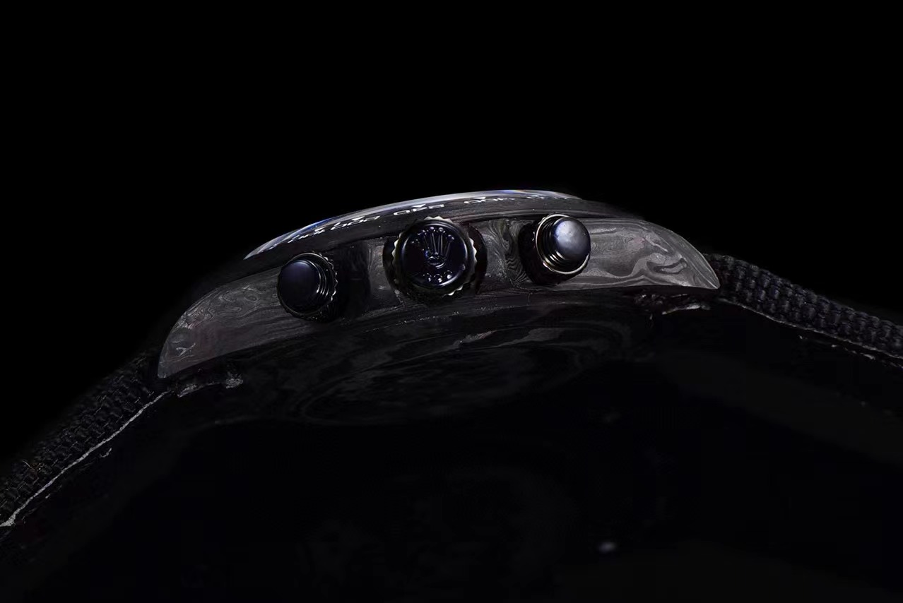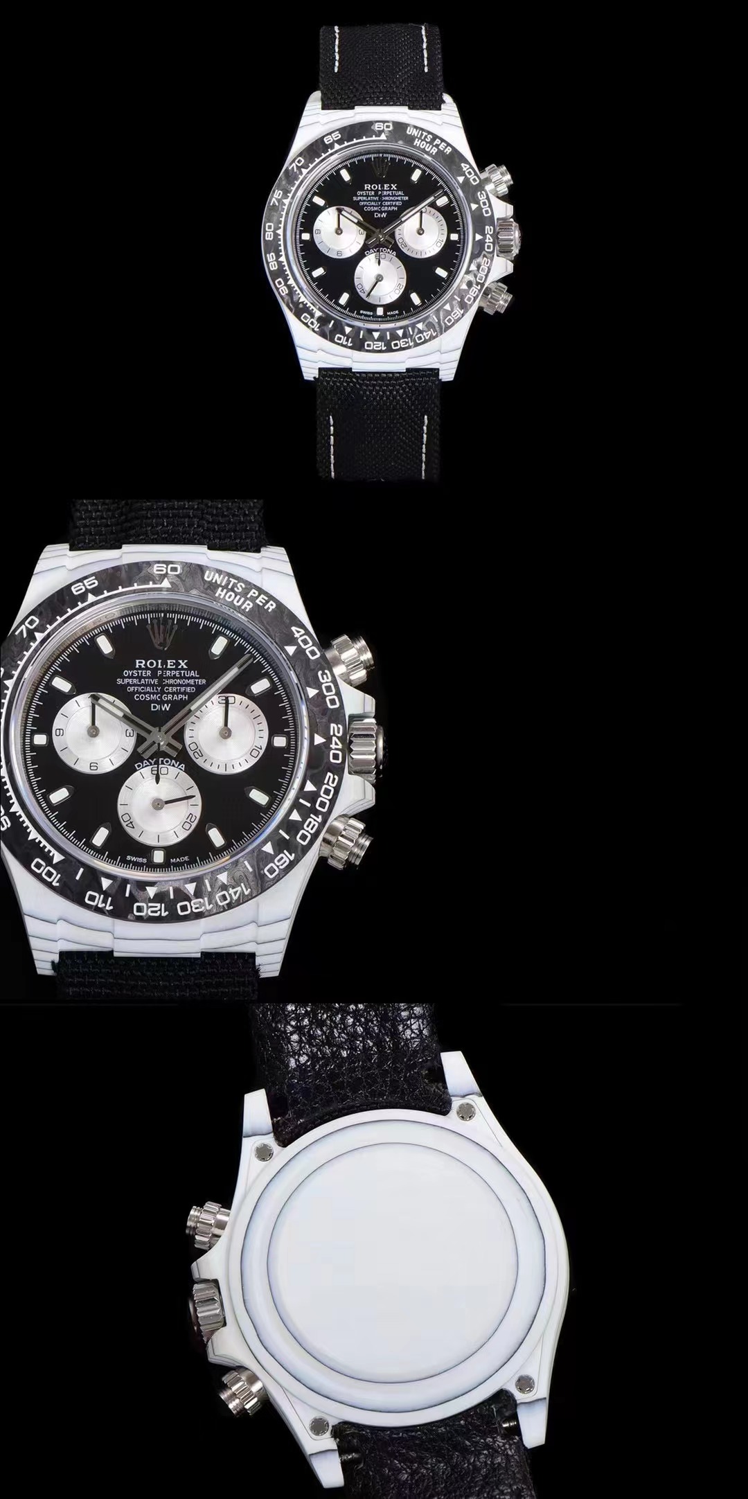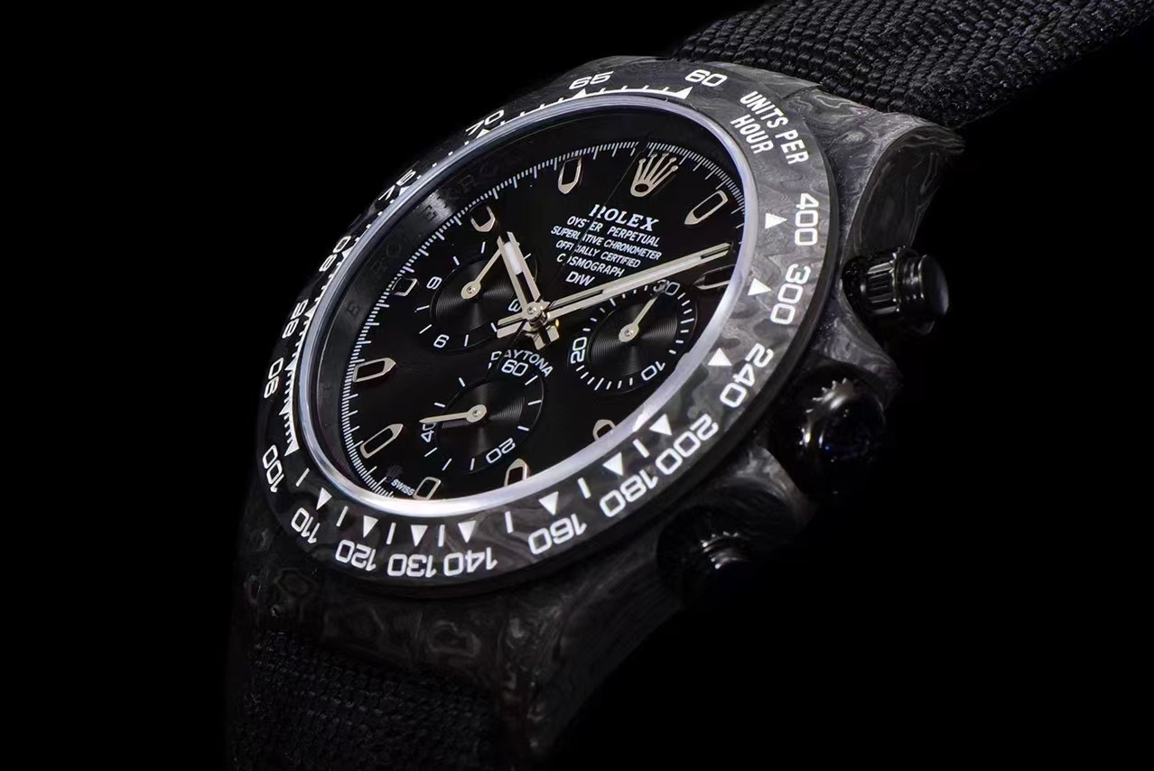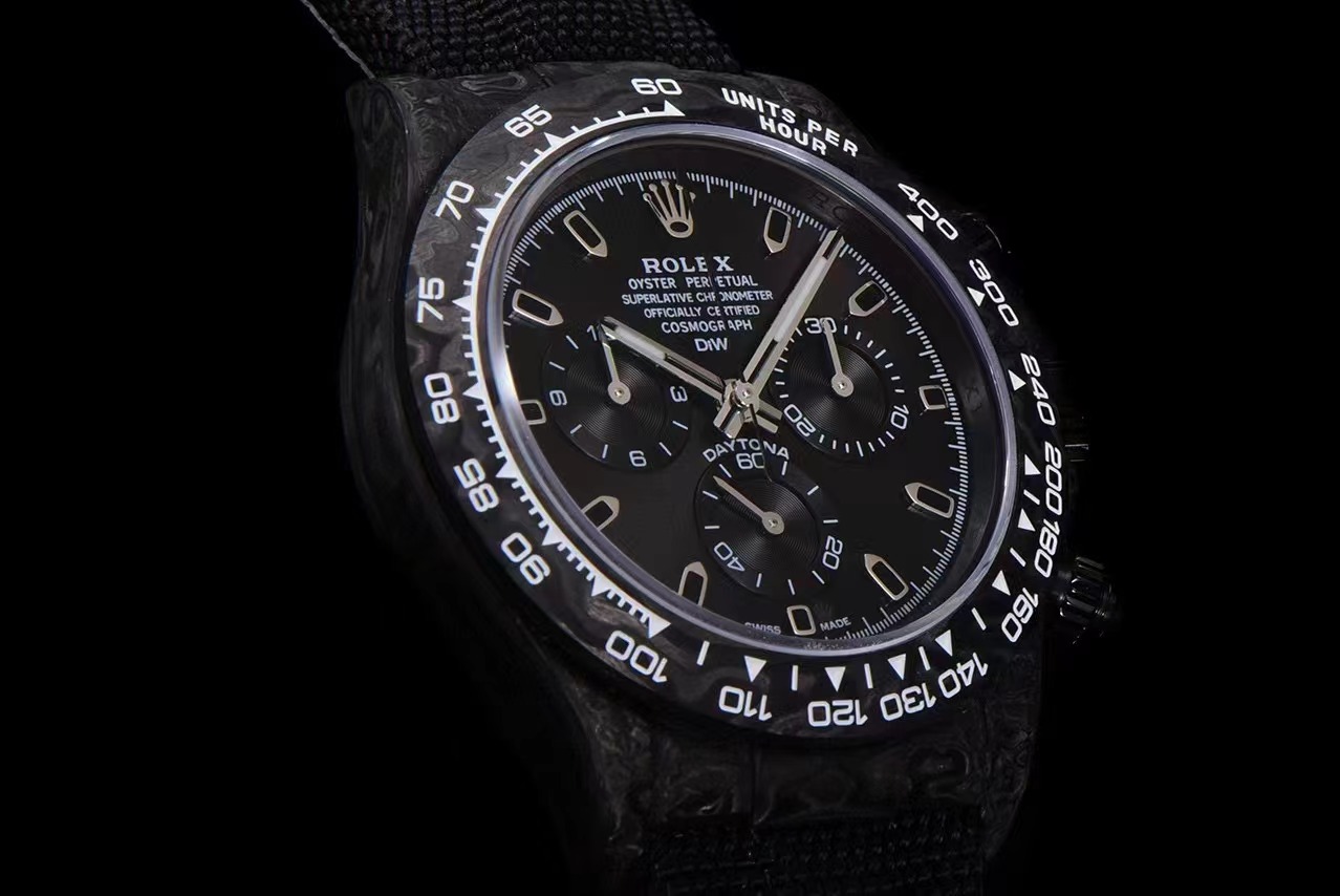 DiW版迪通拿系列碳纖維殼款,裝配4130機芯,整表相當于一個雞蛋的重量。