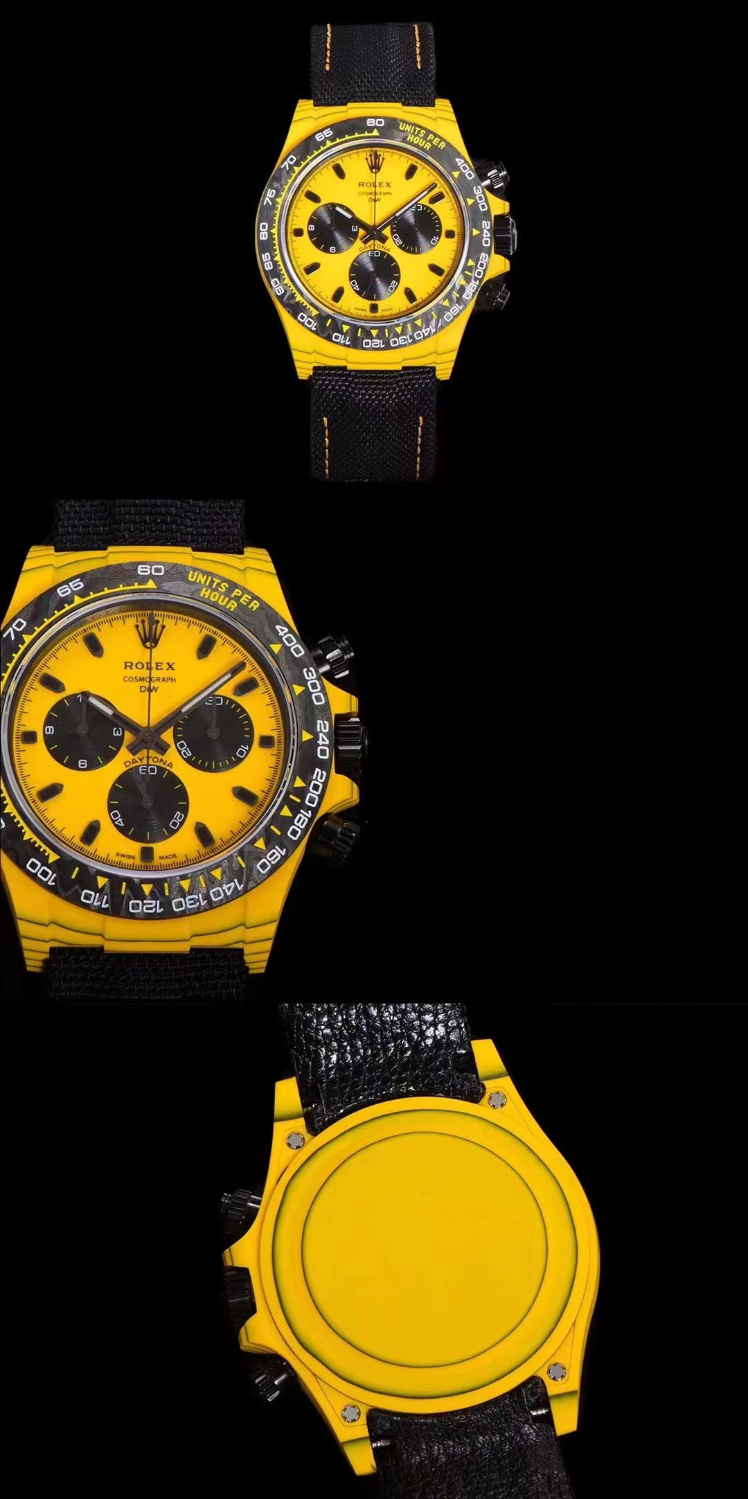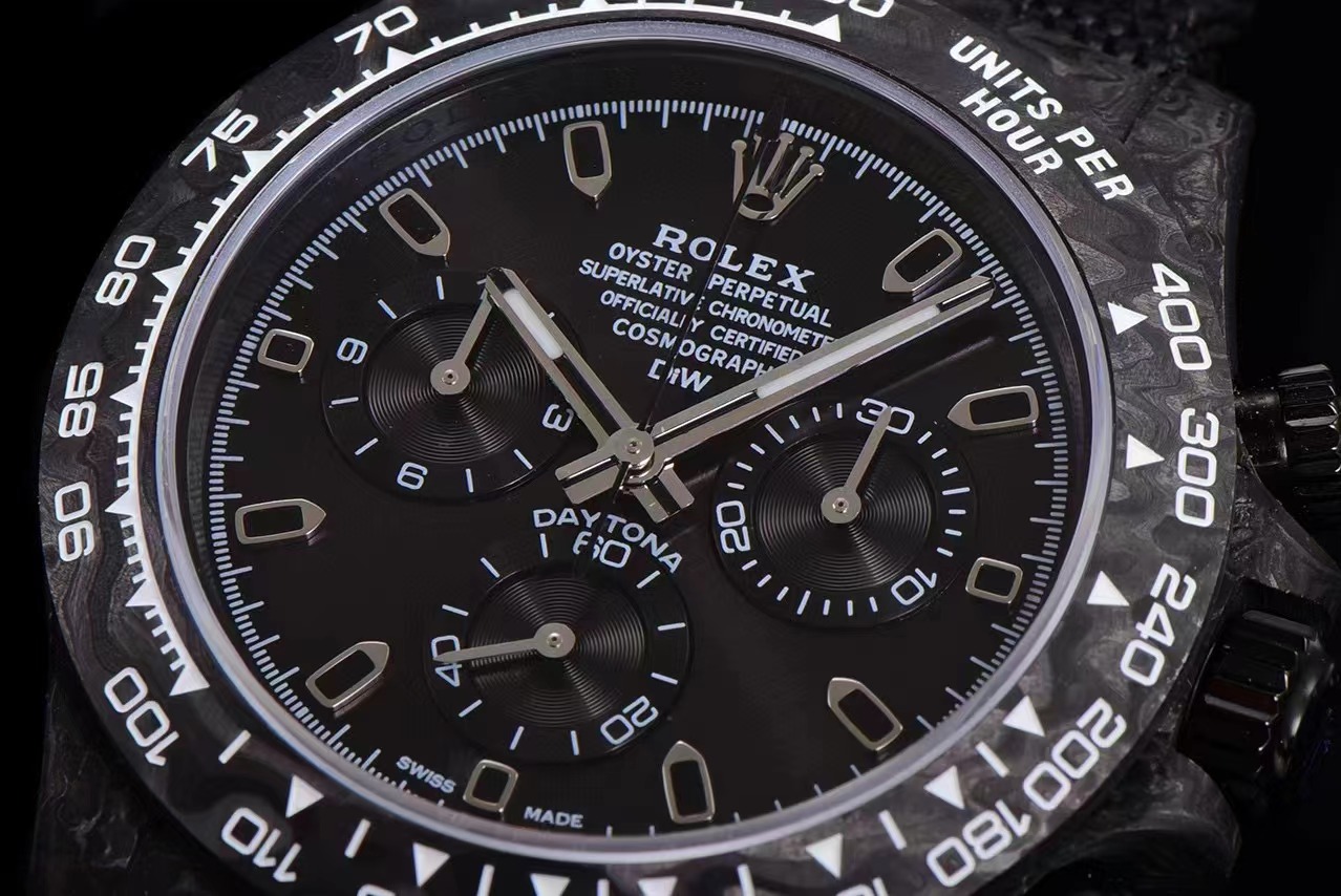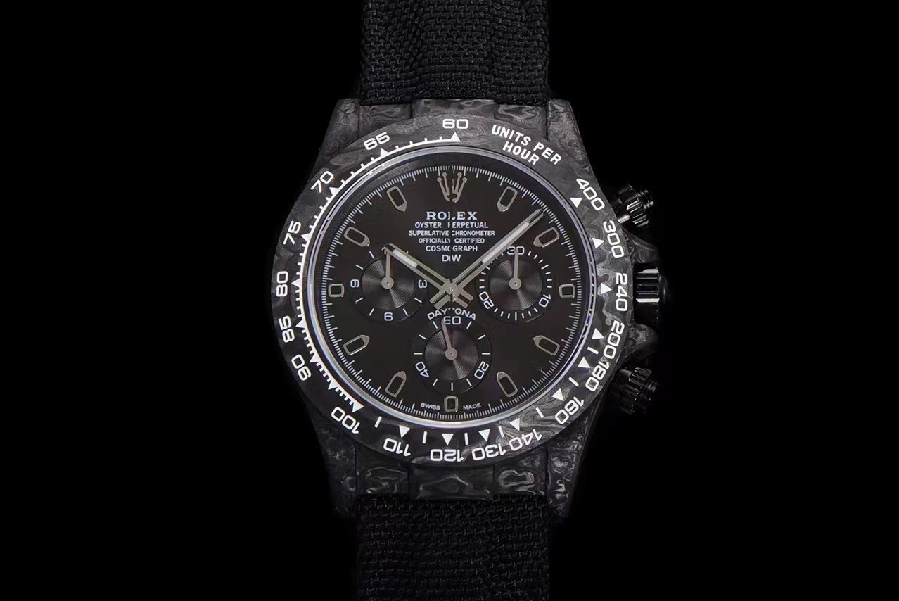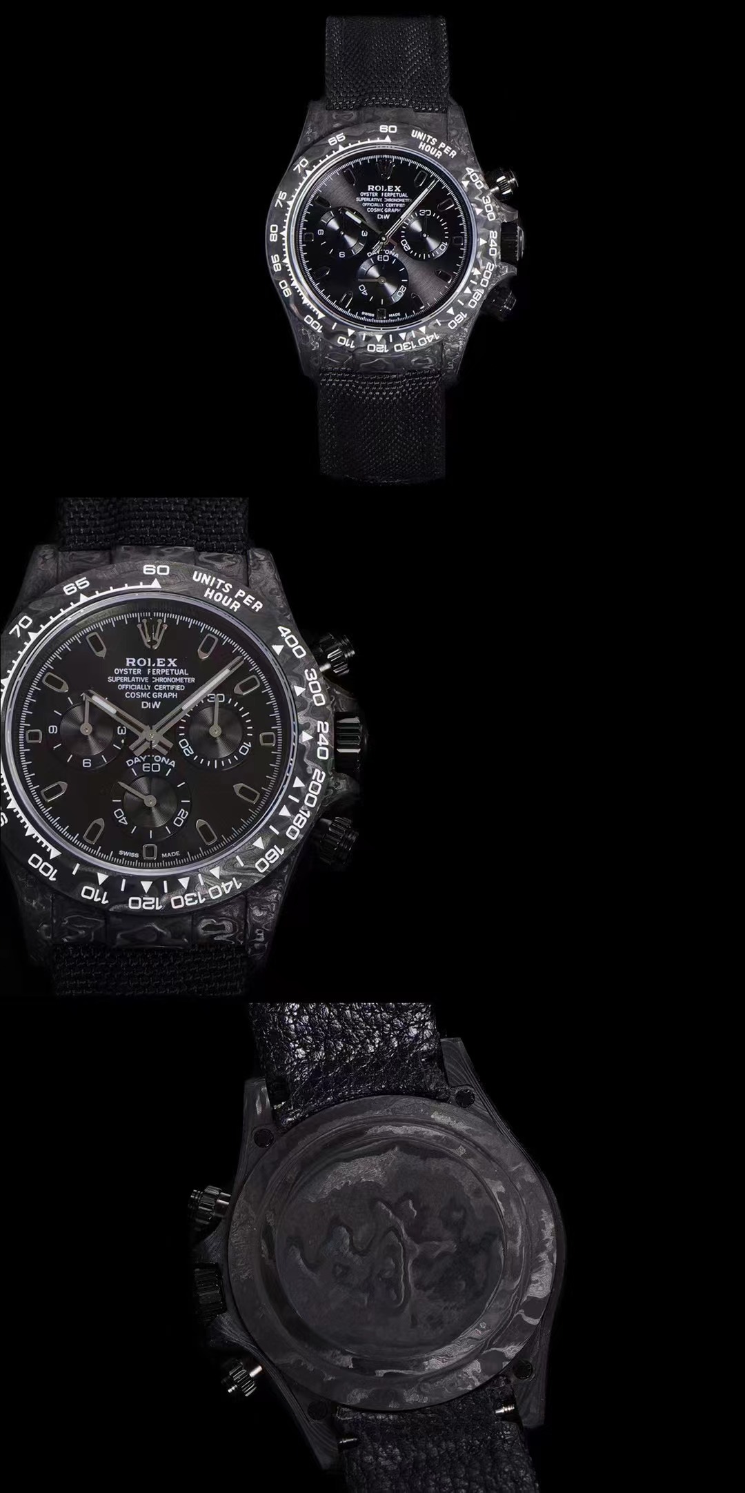 DiW版迪通拿系列碳纖維殼款,裝配4130機芯,整表相當于一個雞蛋的重量。