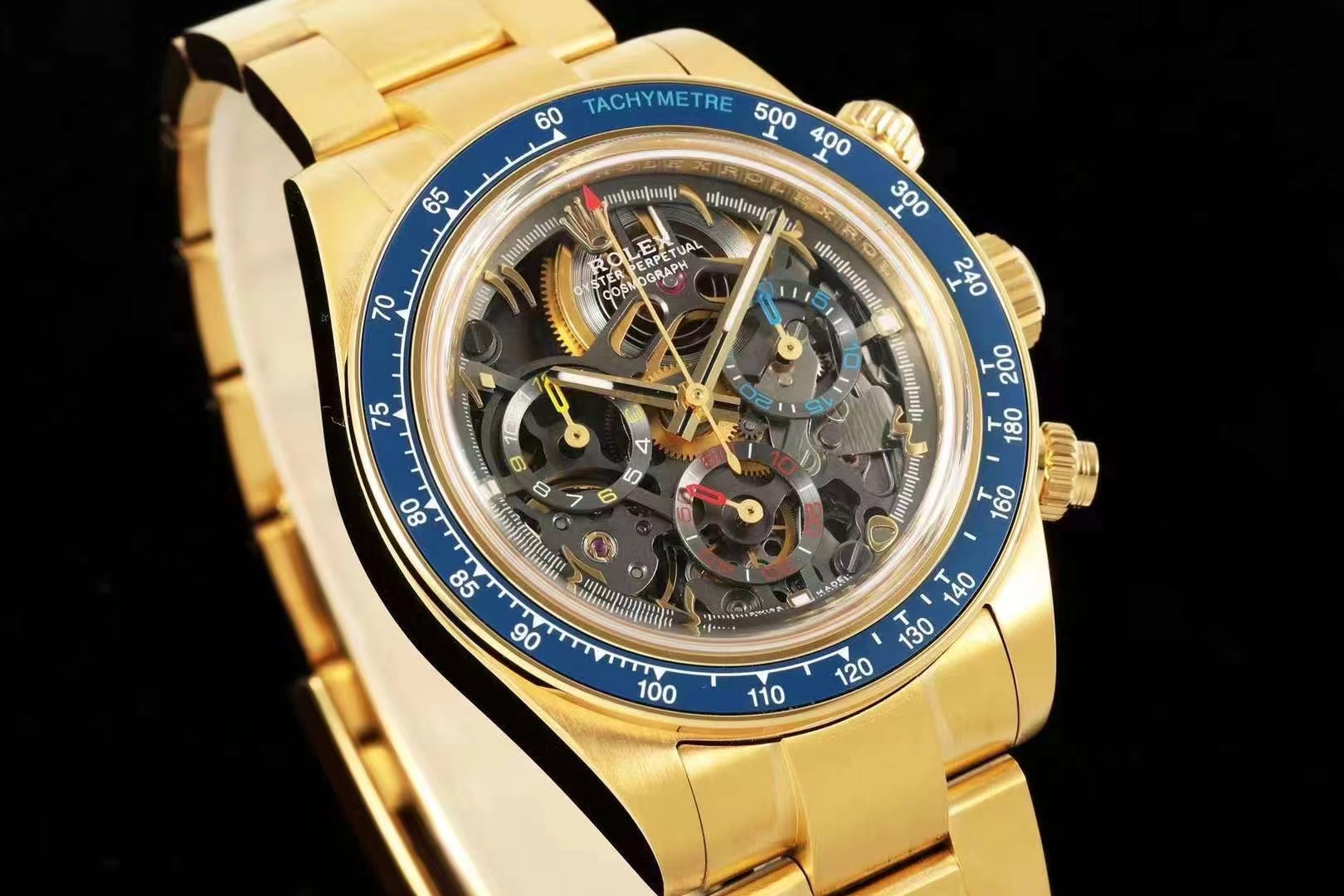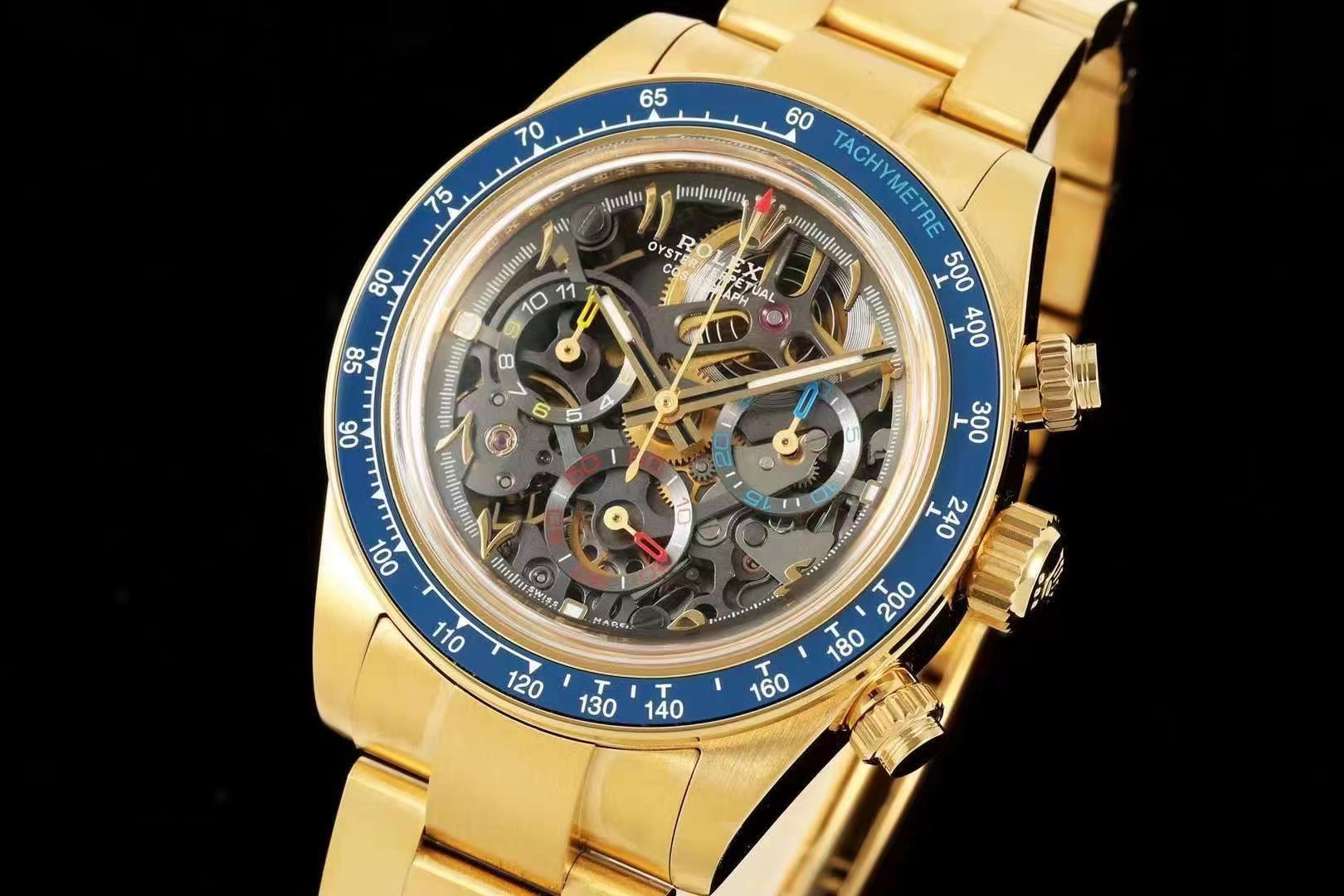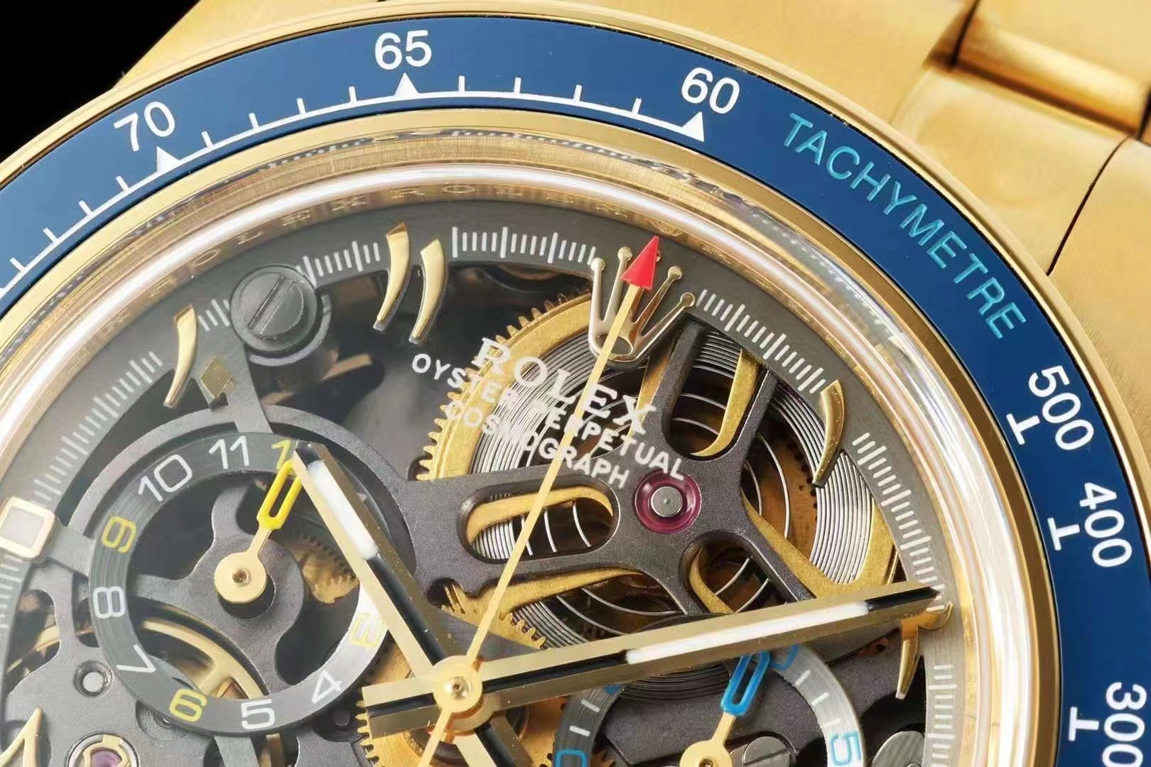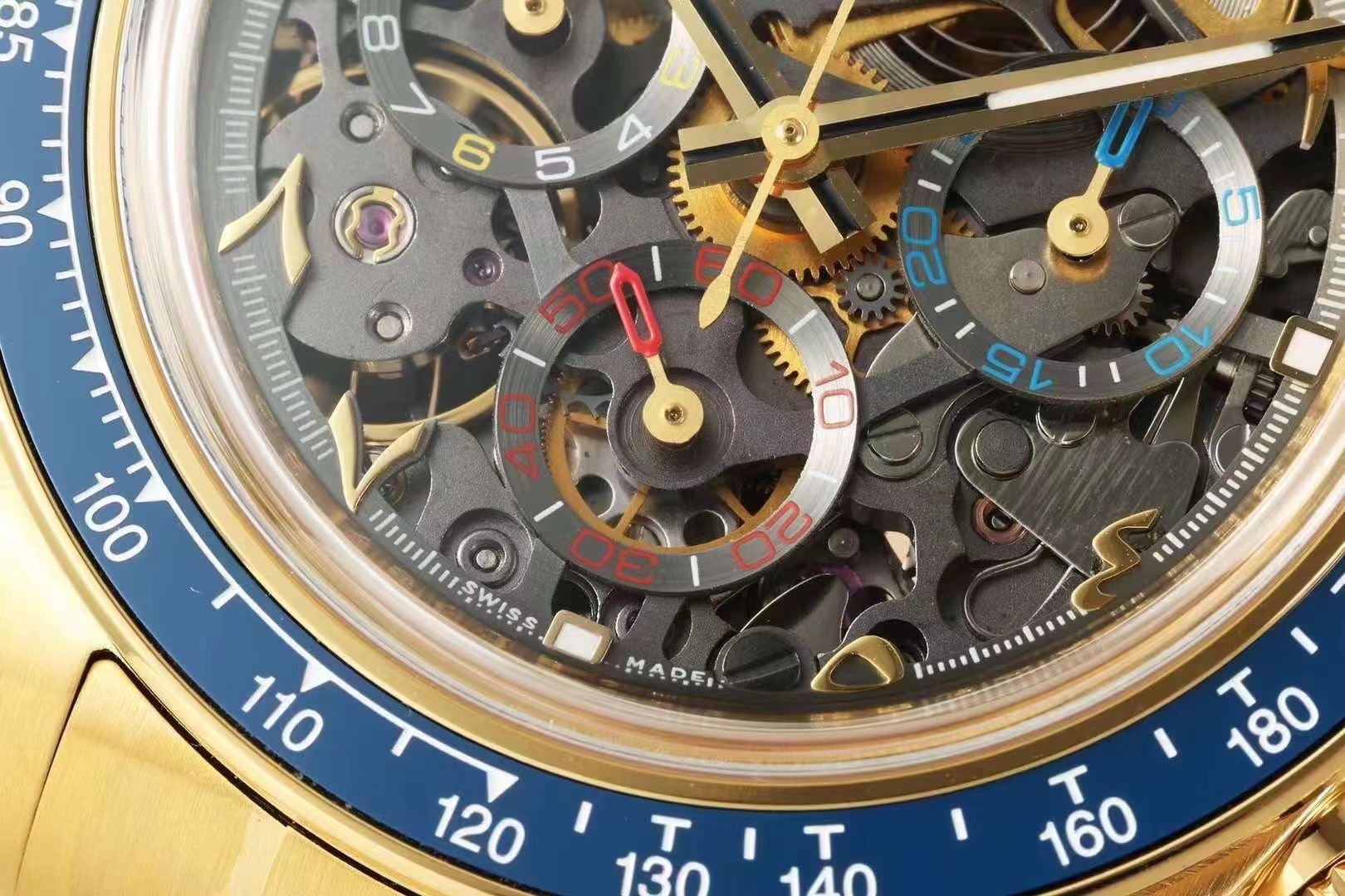 1、重新設計勞力士 4130 型機芯,將這款現代高性能柱輪計時碼表改造成镂空版本,