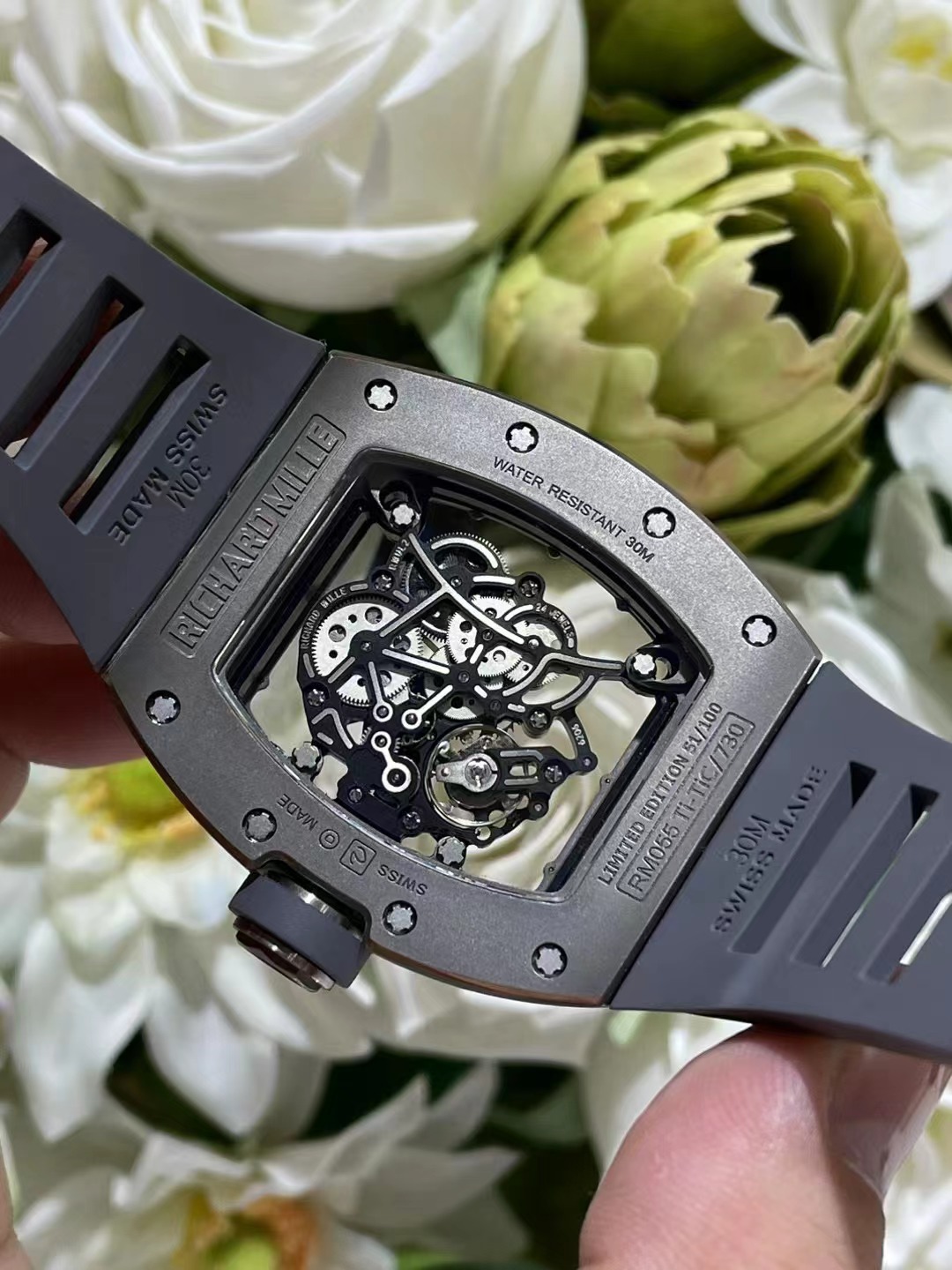 定制版阿尼基的玩具表理查德米勒RM055槍灰陶瓷 全球销量100支 灰色陶瓷代用錶身V3雙發盒無卡度代用機心