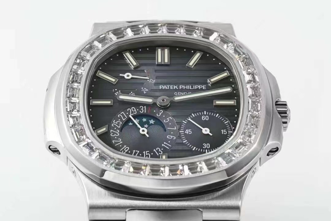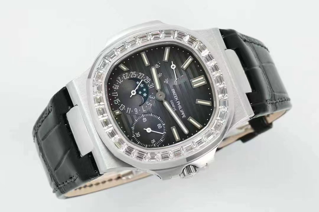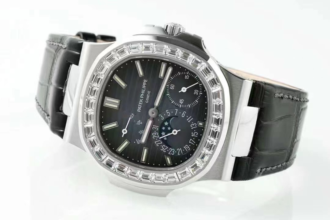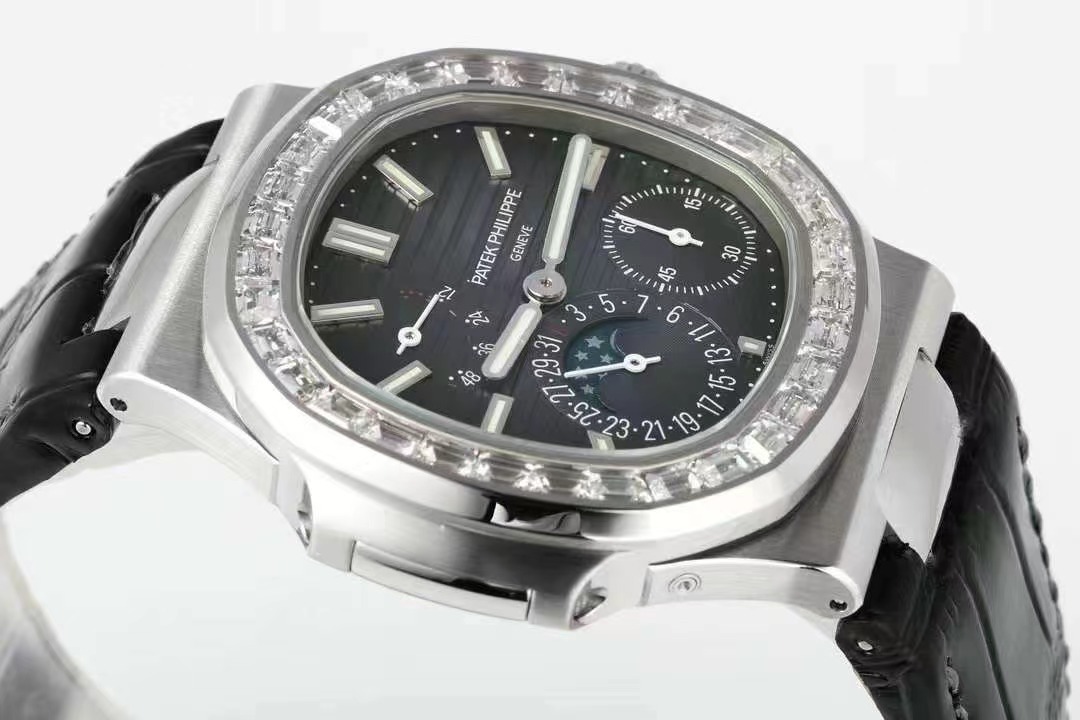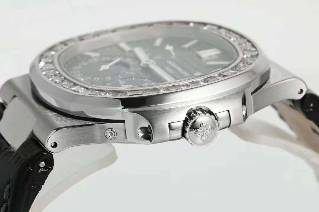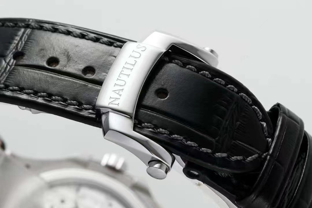 百達翡麗PP5712GR 方鑽皮帶V3版,巅峰出道了!這是真正具有里程碑意義的超級一體機芯Cal.240 PS IRM C LU。全機芯零件數265個,平面遊絲,21600每小時振蕩次數 Gyromax帶調節砝碼的擺輪,穩定無誤差。(不同于市面上現有的假機芯蓋甲板,假珍珠陀) 全新修正的不鏽鋼表帶,鉸鏈部分根據真正的百達翡麗鹦鹉螺不鏽鋼表帶拆解開發,和正品一致的貼合效果,逆襲市面上所有副本,鉸鏈開合角度和正品一致,鎖畢聲音和正品相同。而PPF廠獨家的“藍魅”面無限接近接近原版,更是傲視群雄!