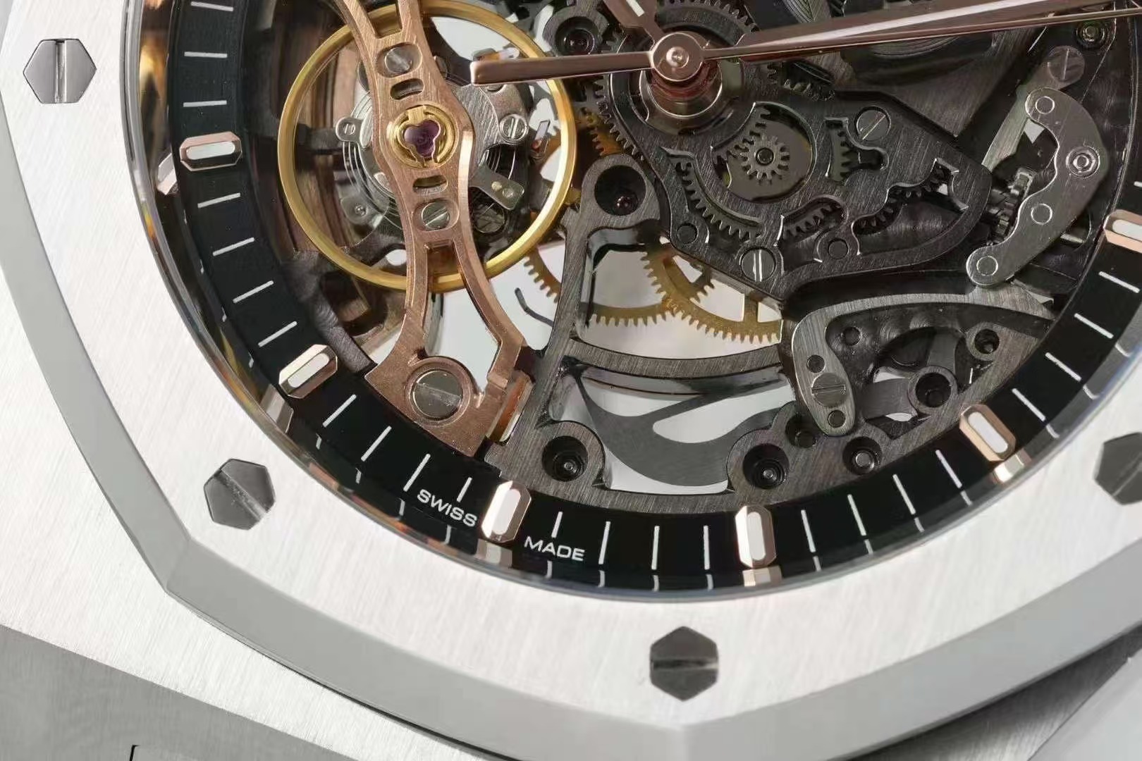 15407吸引眼球的莫過于八點位的擺輪和擺夾板,THB 全新定制真擺輪,