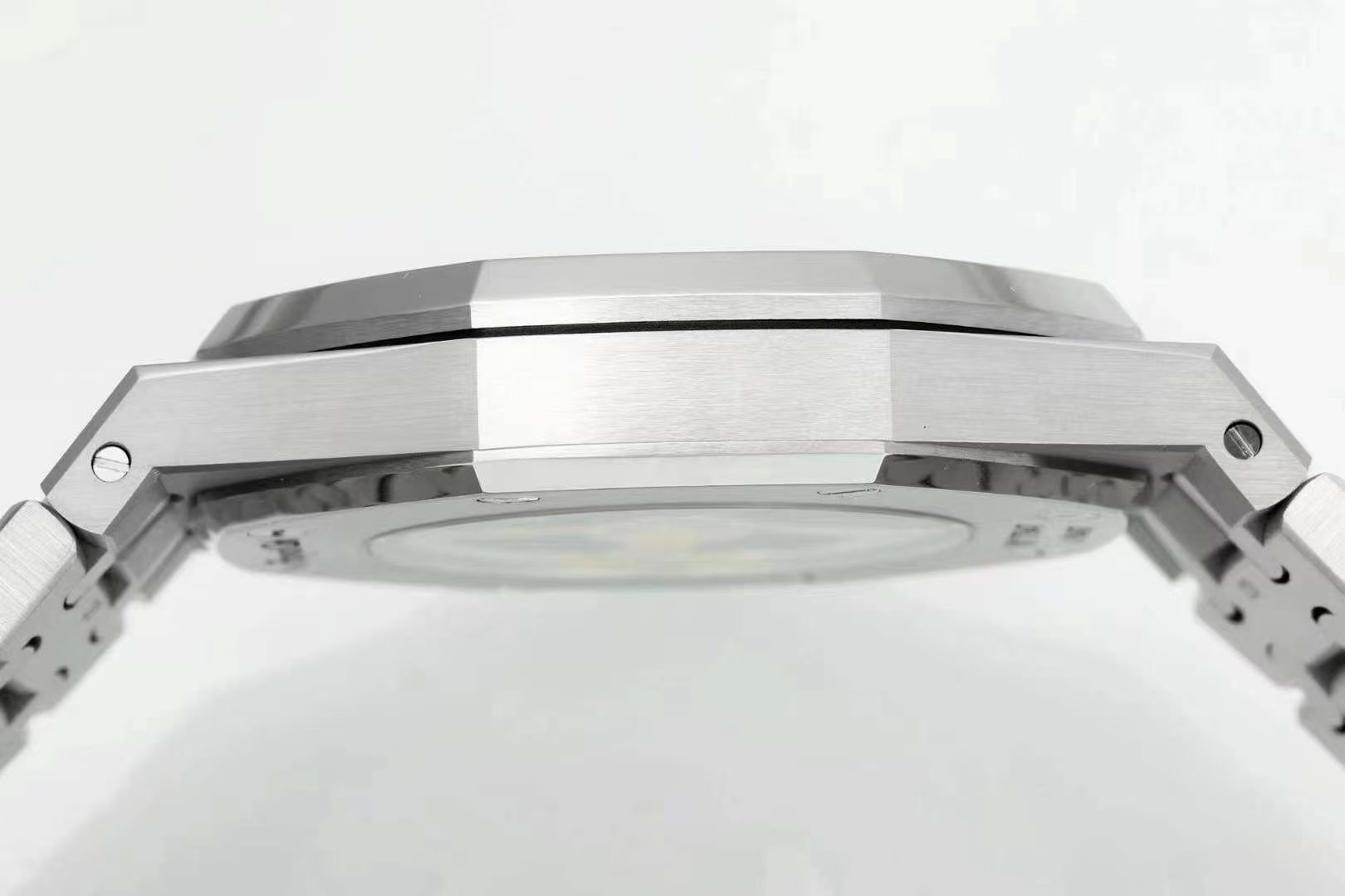 可以看到采用八顆六角螺絲鎖定的一體式表殼能很好的降低底蓋厚度