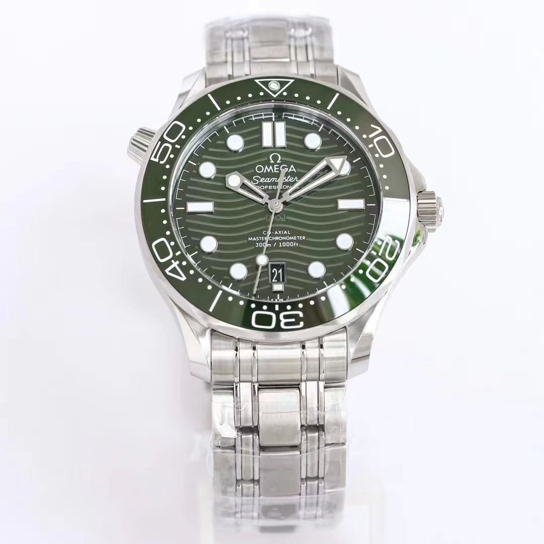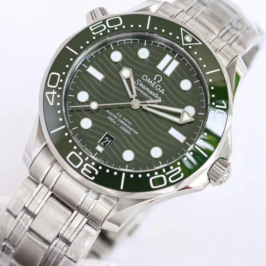 42mm精鋼錶殼,單嚮旋轉拋光綠色陶瓷錶圈,搭配採用激光技術鐫刻波紋圖案的綠色拋光陶瓷錶盤,還有更便於運動的一體式綠色橡膠錶帶備選。在不同的光線照射之下,它或者顯得鮮亮油綠,或者顯得幽幽暗綠,不同的人在不同角度下的第一反應,自然而然完全不同。