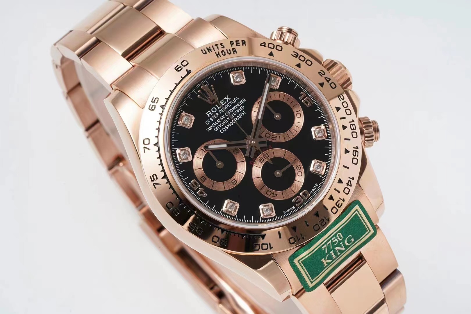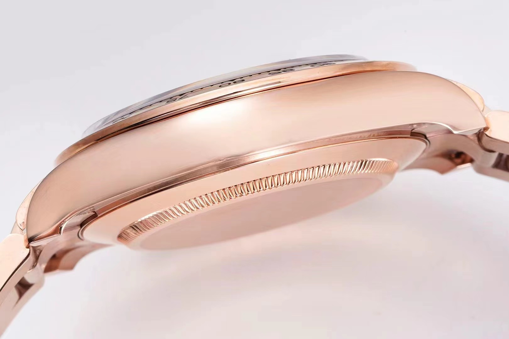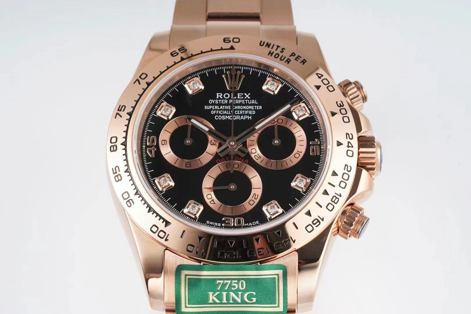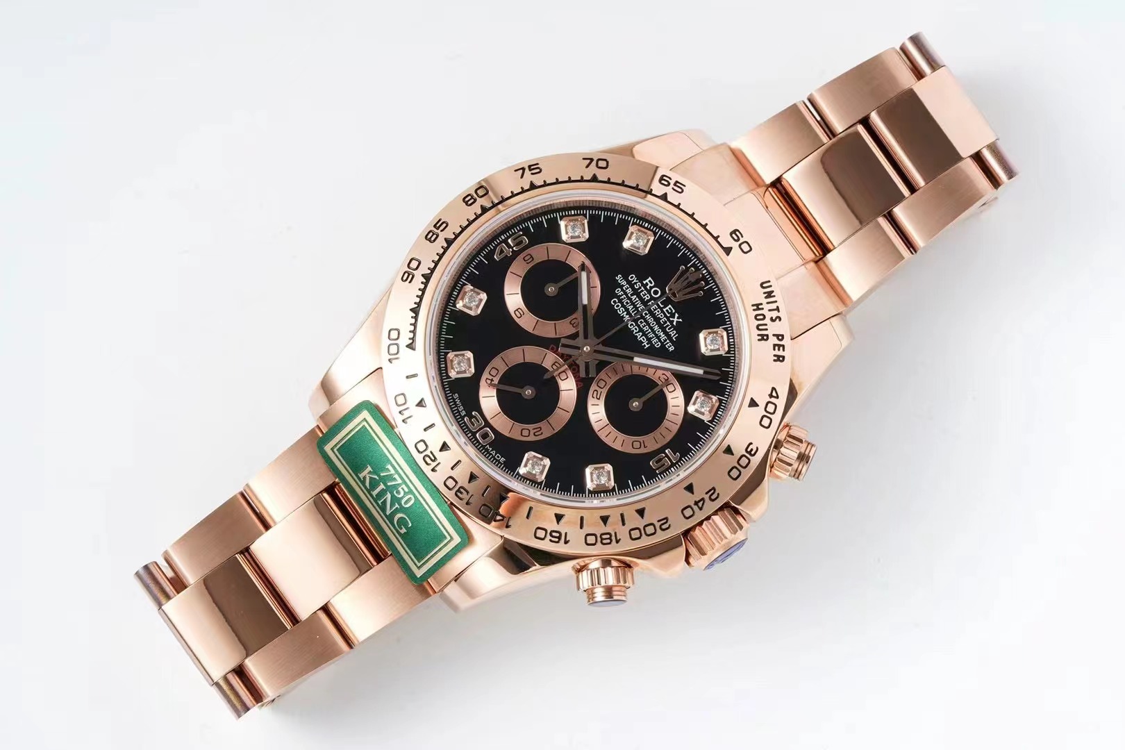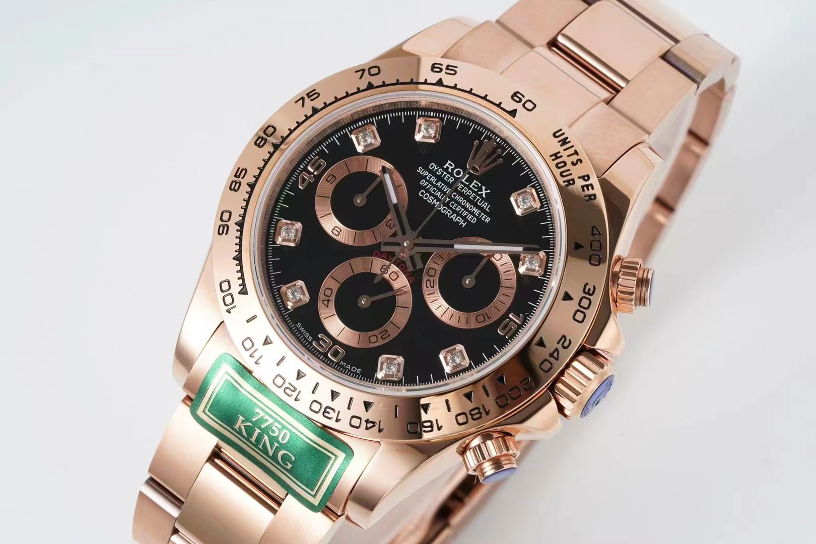 6.白金版的鋼帶和玫瑰金的鋼帶和殼身,都與白鋼和黃金款不同! 市面上的其他廠家的7750迪通拿殼帶身與KING的產品是不同的。請註意正品細節!