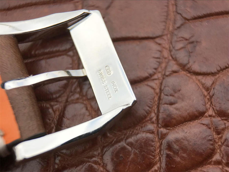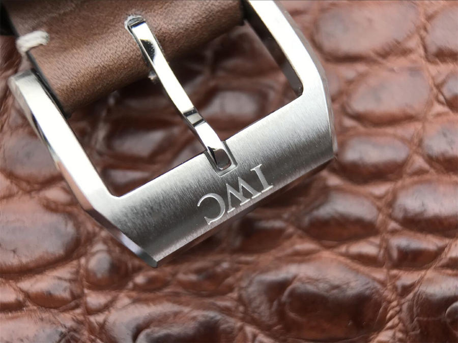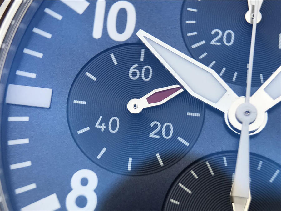 【精彩細節】1.ZF沿襲萬國表的傳統技藝,采用雙層淺藍色防眩暈鍍膜。2.分針秒針的尾部微微彎曲,細節吻合正品。