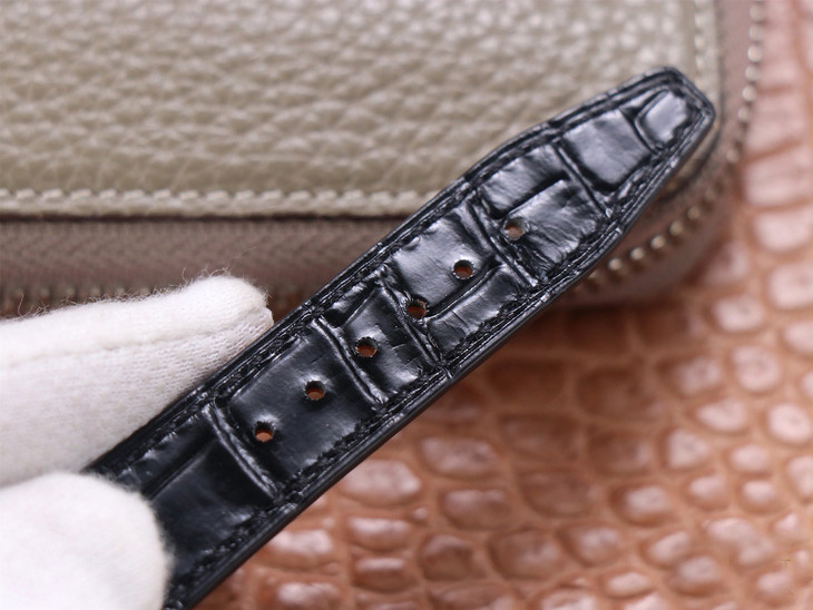 8.V7廠沿襲皮帶工藝標準,采用高成本美洲鱷魚皮,車線工整,壓字清晰,底皮亦采用牛皮,質感給力。親民海鷗2892機芯版本搭配小牛皮。表帶顏色可供選擇。