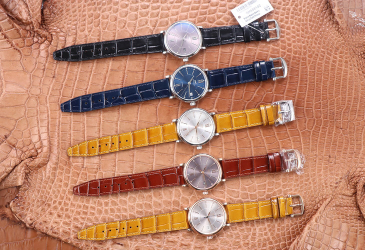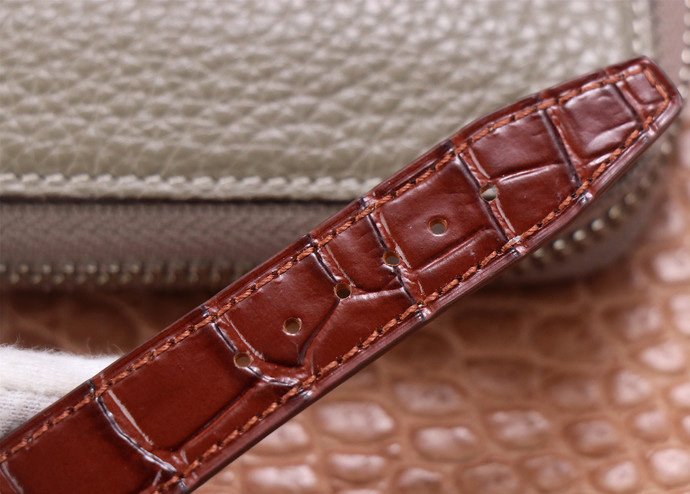 8.V7廠沿襲皮帶工藝標準,采用高成本美洲鱷魚皮,車線工整,壓字清晰,底皮亦采用牛皮,質感給力。親民海鷗2892機芯版本搭配小牛皮。表帶顏色可供選擇。