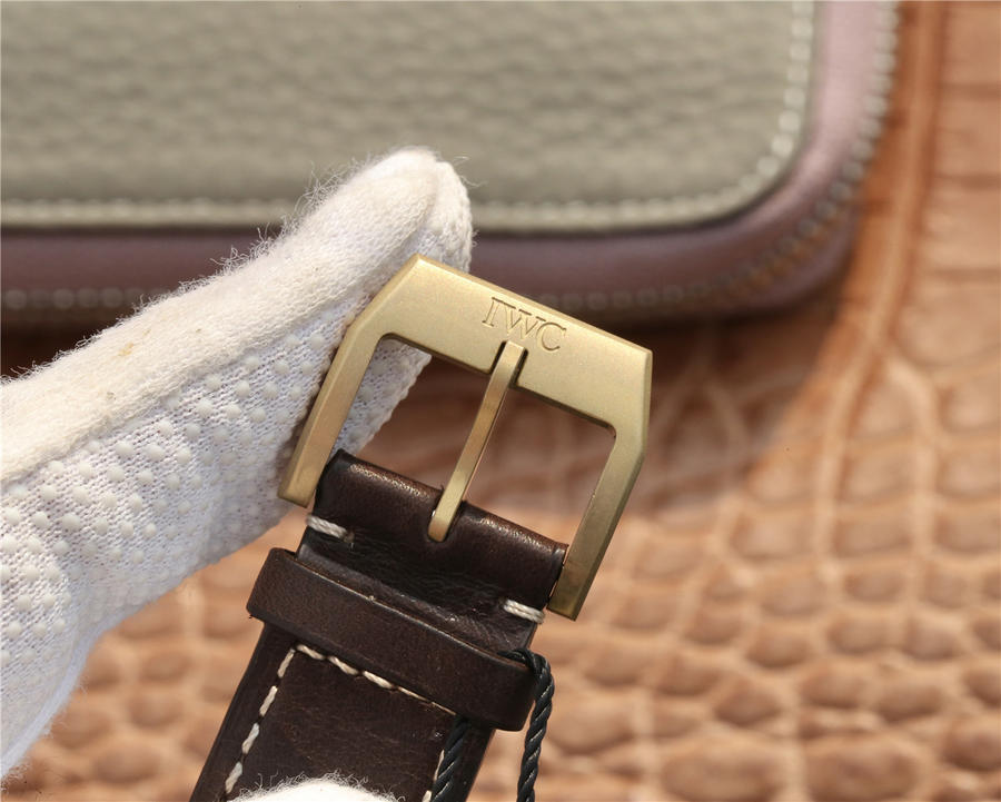 【表帶扣】與正品壹致采用青銅材質打造的IWC式經典針扣,配備純手工縫線意大利小牛表帶。