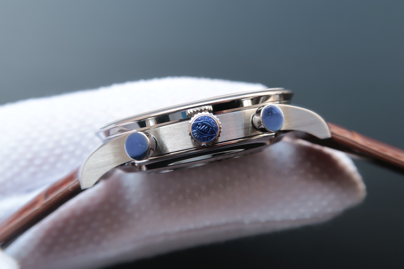 萬國V7版超級超薄葡計IWC371445。直徑40.9mm.耗時長達18個月,攻克重重難關研發復制正品A79350機芯。通過運用改良後的機芯做到的提升是壹,表殼厚度於正品吻合(僅12.3毫米)之前因為7750機芯厚度的限制殼身是13.5mm二,把頭和上下兩顆計時按鍵呈拋物線狀(之前是垂直壹線)改進過後整體更加協調。百分百還原正品儒雅秀氣的風範。三,圈口,中殼,底蓋三件套的裝配順序和結構吻合正品(都是通過螺絲固定)IWC371445密低無破綻。