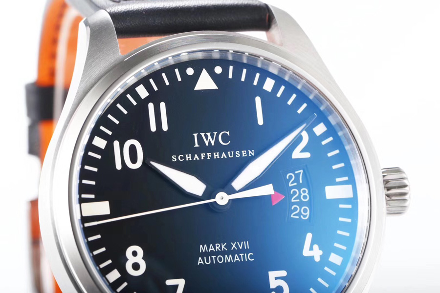 MK廠生產的萬國手表飛行員系列馬克17自動機械腕表IW326501,該款在做工上是屬於頂級精品級別制作,細節的做工及表殼拋光打磨極為細致,外觀上甚是完美。馬克17絕對是上班族首選表款之壹。原因是這款表簡約的表盤設計搭配鋼帶或者真皮表帶,正裝休閑都能hold住,而且作為MK廠的完美版本,經過指針、日期數字等修復之後,達到以假亂真的高度。